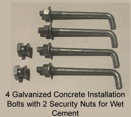 4 Galvanized Concrete Installation Bolts with 2 Security Nuts for Wet Cement